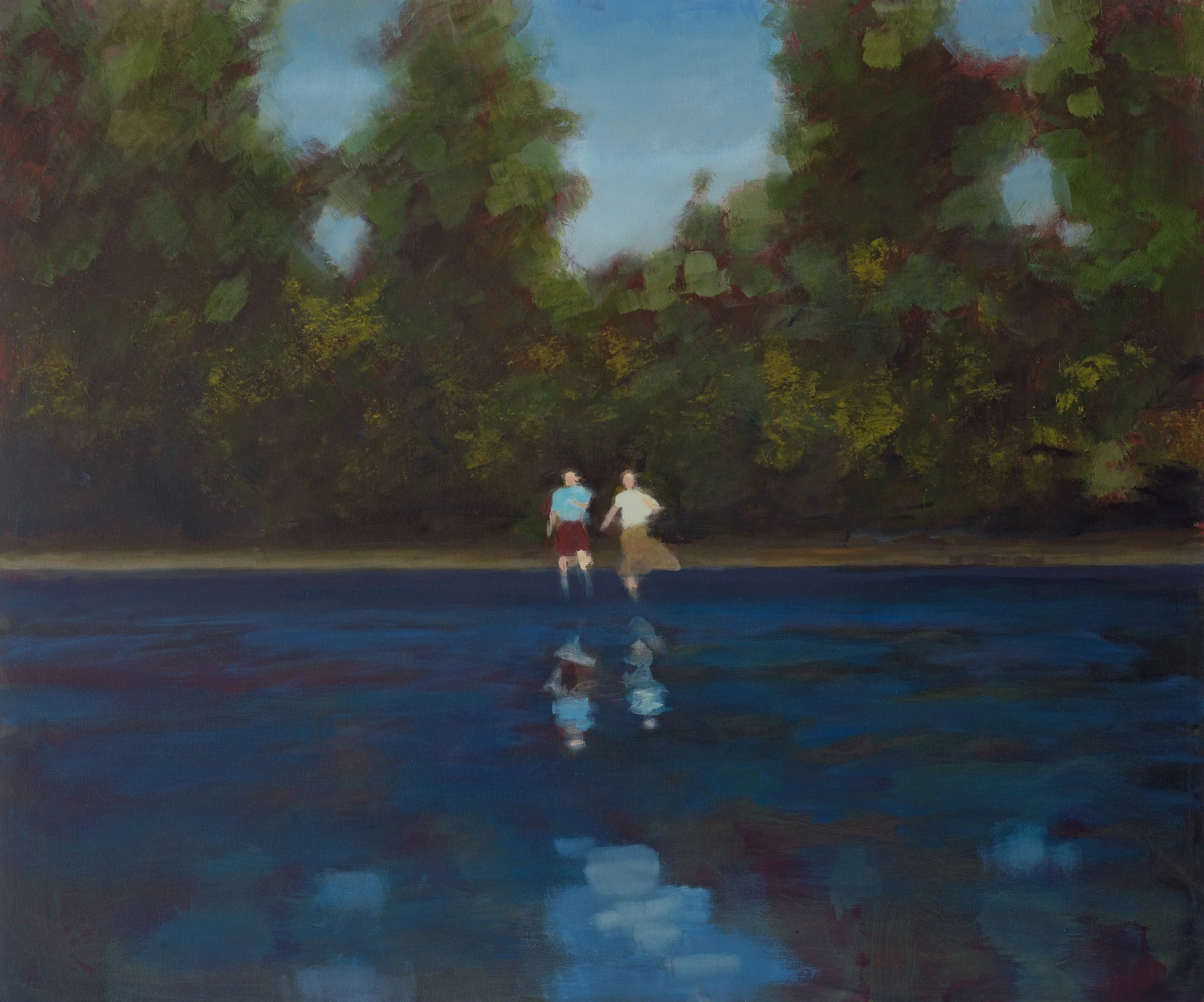 David Storey is a contemporary British artist known for his evocative figurative paintings set within an imagined world of melancholy, stillness, and quiet transcendence. Storey’s paintings are constructed through the use of found images and visual fragments. Central to his practice is the conviction that the past is not fixed but transparent and profoundly mysterious. His works seek to create psychologically charged images of a reality that lies somewhere between memory and dream—scenes that quietly linger, haunting the viewer’s imagination while maintaining a sense of calm, restraint, and stillness.