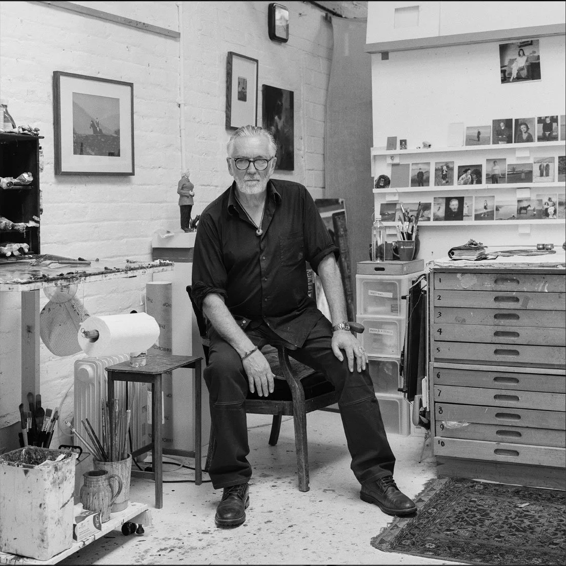 Born in the mining town of Workington, in the county of Cumberland, he grew up surrounded by the dramatic landscapes of the English Lake District—an environment that continues to inform the mood and atmosphere of his work. He studied at Hornsey College of Art and later at Middlesex University in London. He's now based in Hove, East Sussex, where he continues to explore the meeting point of imagination and memory.